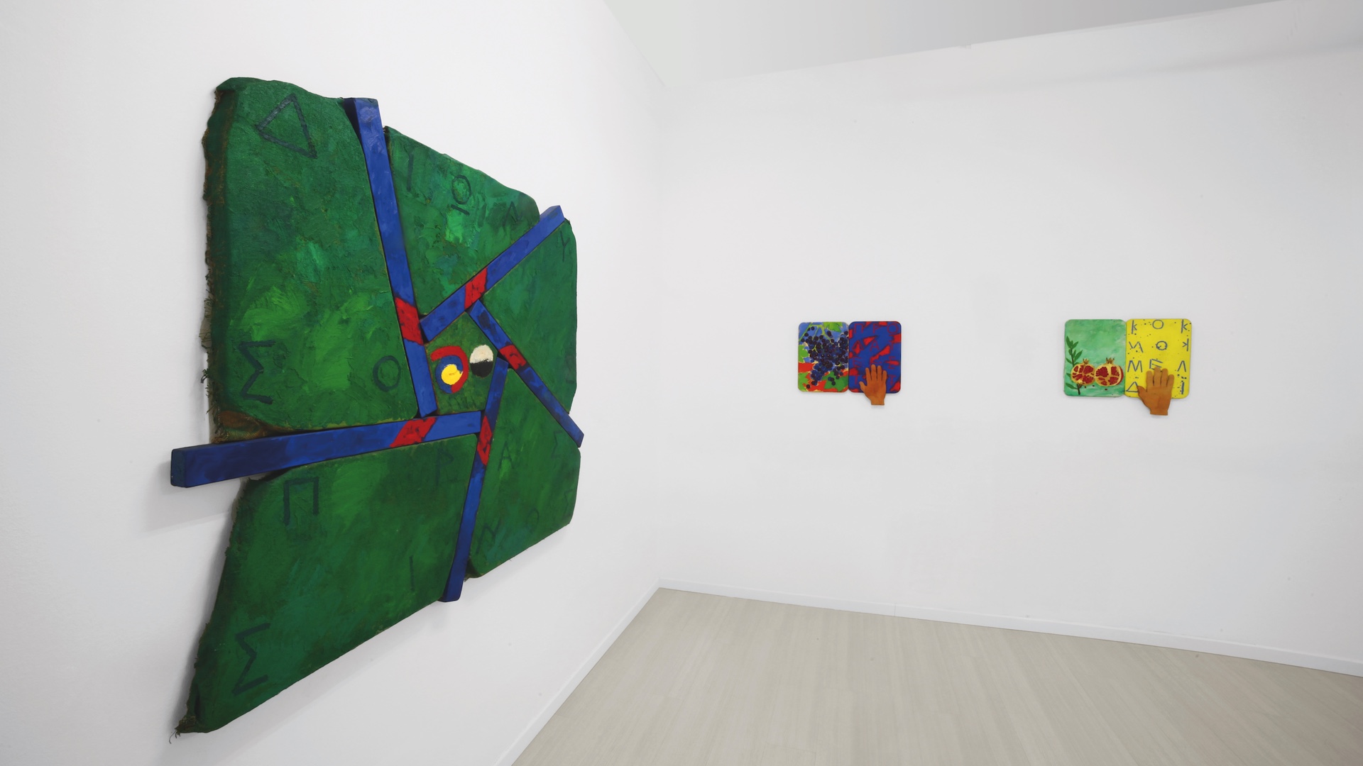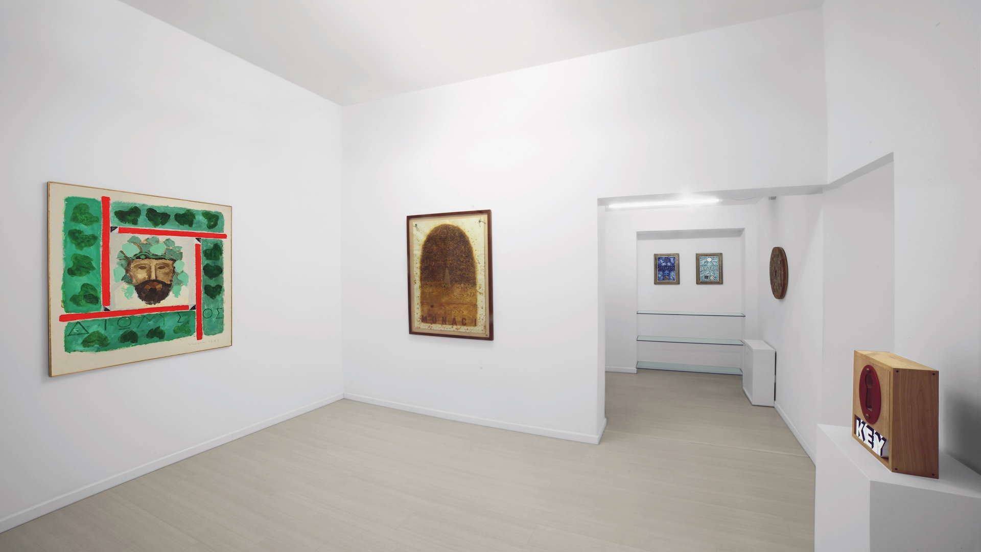 The ancient Greek inscriptions, the recurrent dedications to Dionysus and the four main elements of nature – Earth, Air, Water and Fire: from the cycles Lyknon, Proscinèmi, Signatures, Conjunctions, Crete di Siena, the final result is a wise layering of classic and modern elements. Moreover, the exhibited works want to emphasise the heterogeneous and symbolic role of materials used by the artist in his research: canvas and paper, ceramics and wood, often created in multiples, to echo that seriality constituting a peculiar feature of Pop Art. As a matter of fact, Tilson made a large contribution to the English front of the movement.
